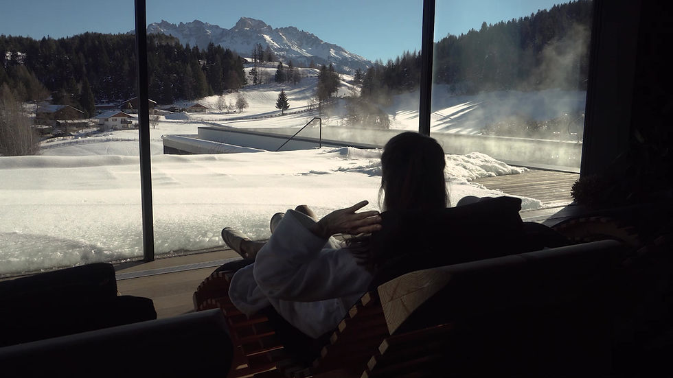 "Breathe in the beneficial herbs that are added to saunas; slip into the refreshing water of the panoramic pool; lean back on one of the handmade loungers and savor the beauty of the alpine garden."
